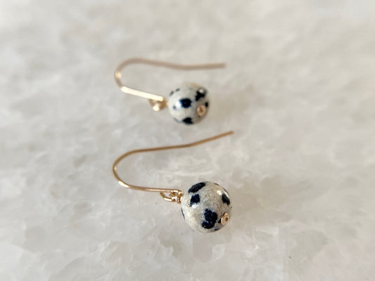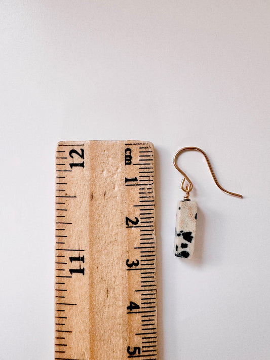Gold Filled Rectangular Dalmation Jasper Earrings