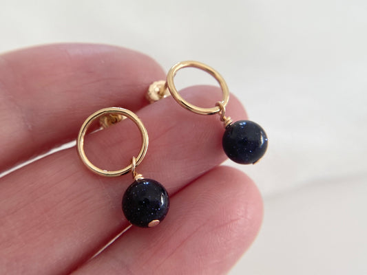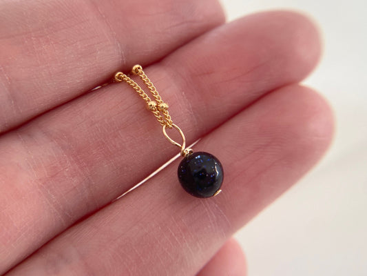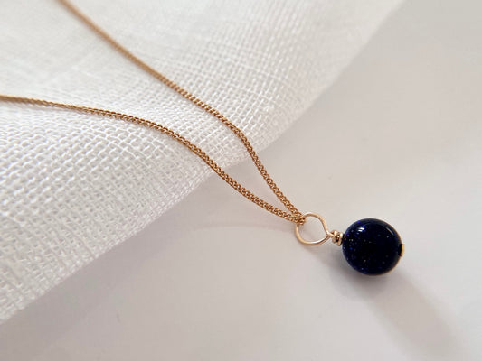 Gold Filled Blue Goldstone Necklace on Satellite Chain