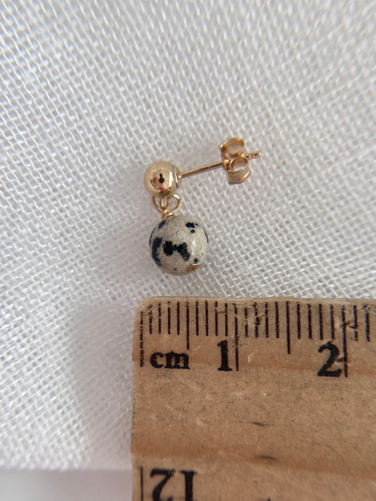 Gold Filled Dalmatian Jasper Stud Drop Earrings