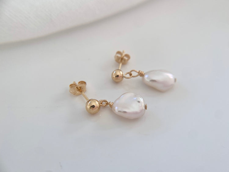 Gold Filled Freshwater Pearl Stud Drop Earrings, Gift for her