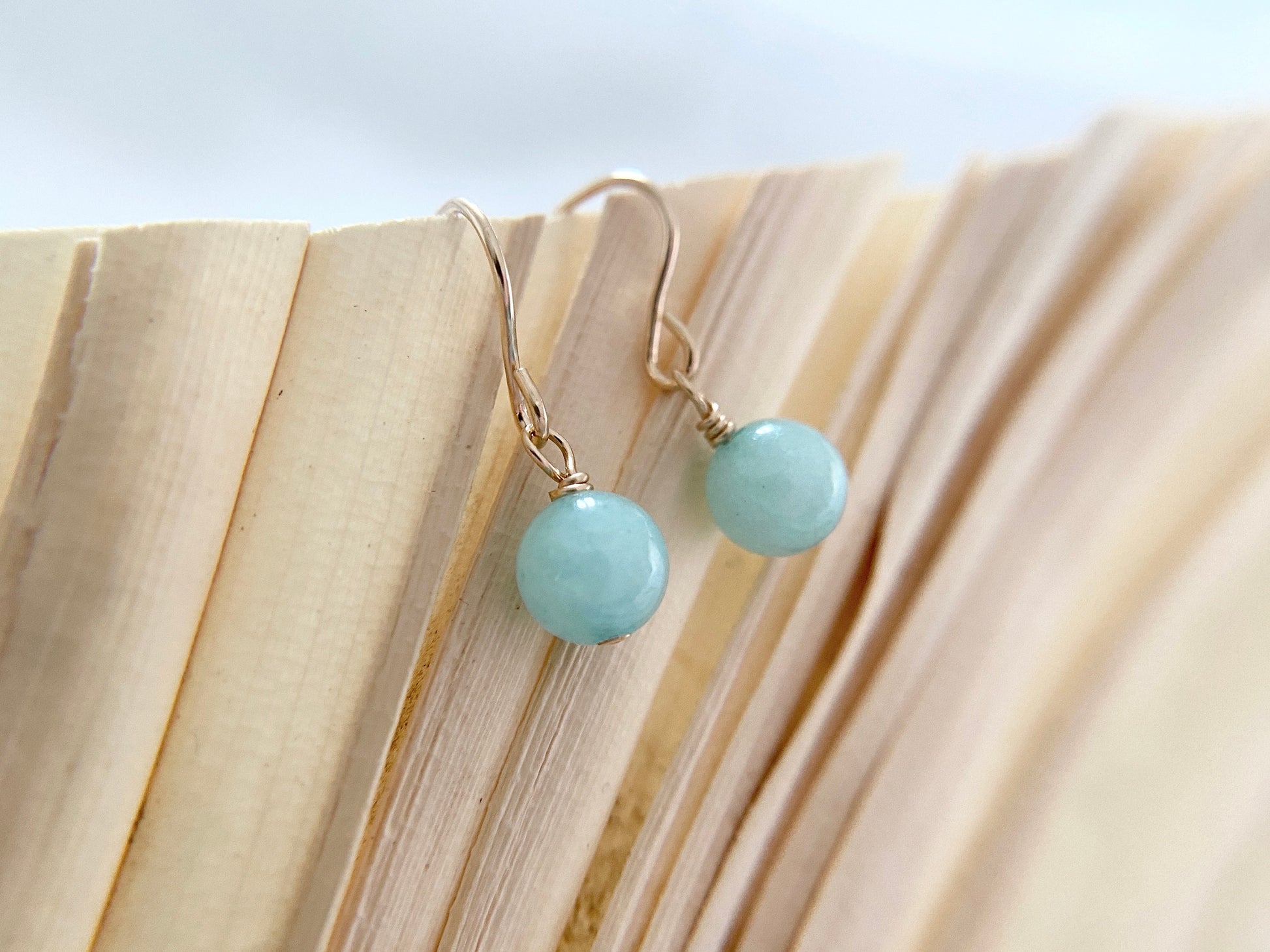A pair of gold-filled earrings with petite Malaysian Jade beads.