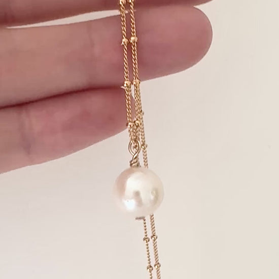 Freshwater Pearl Gold Filled Pendant Necklace on Satellite Chain
