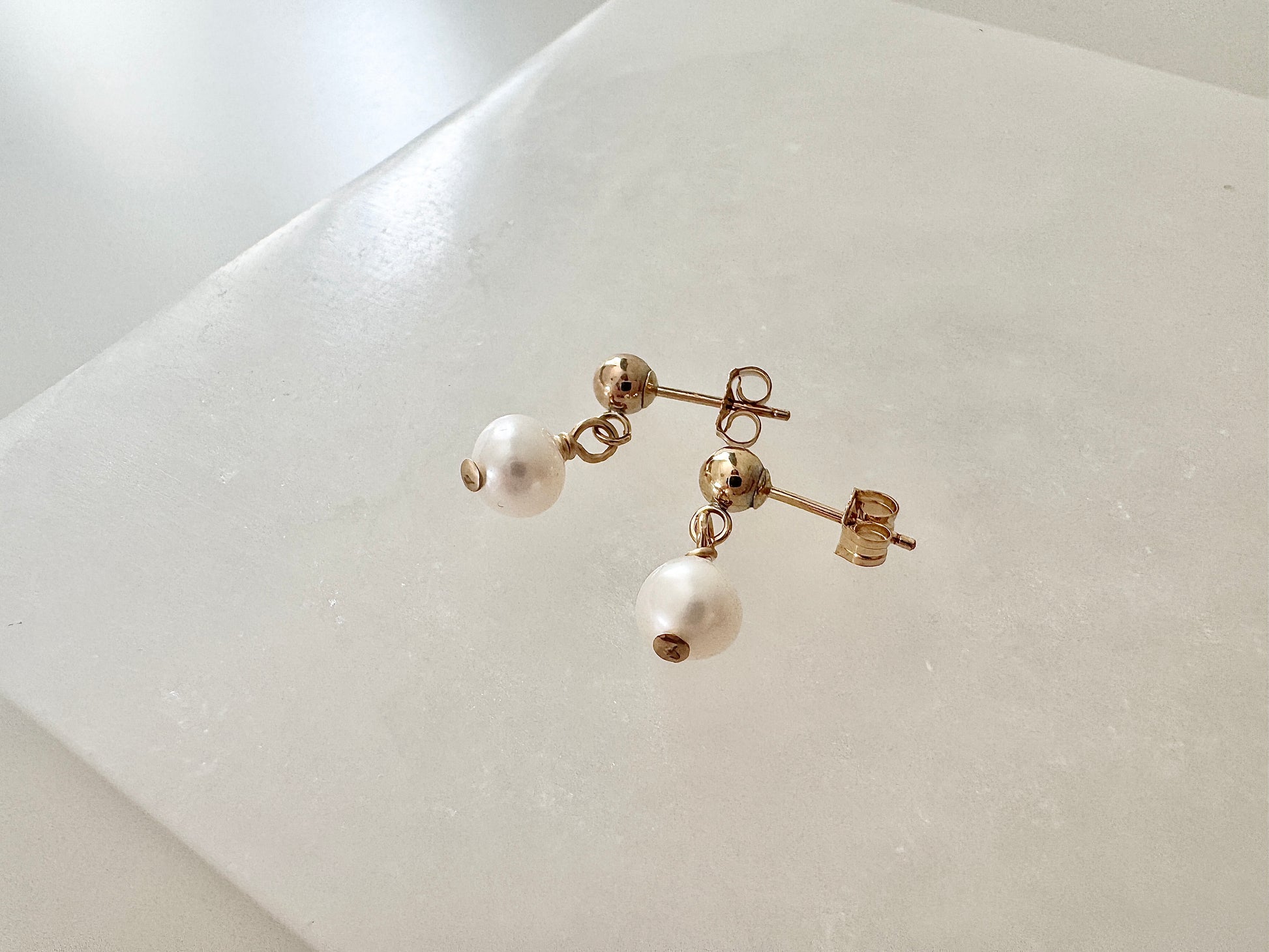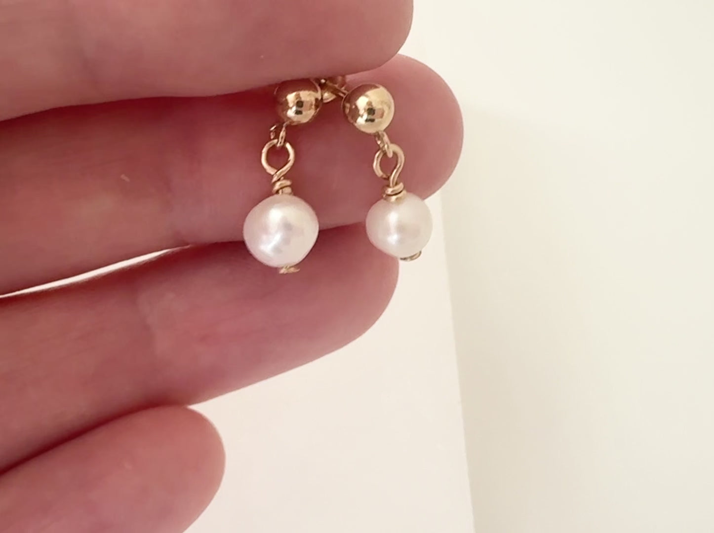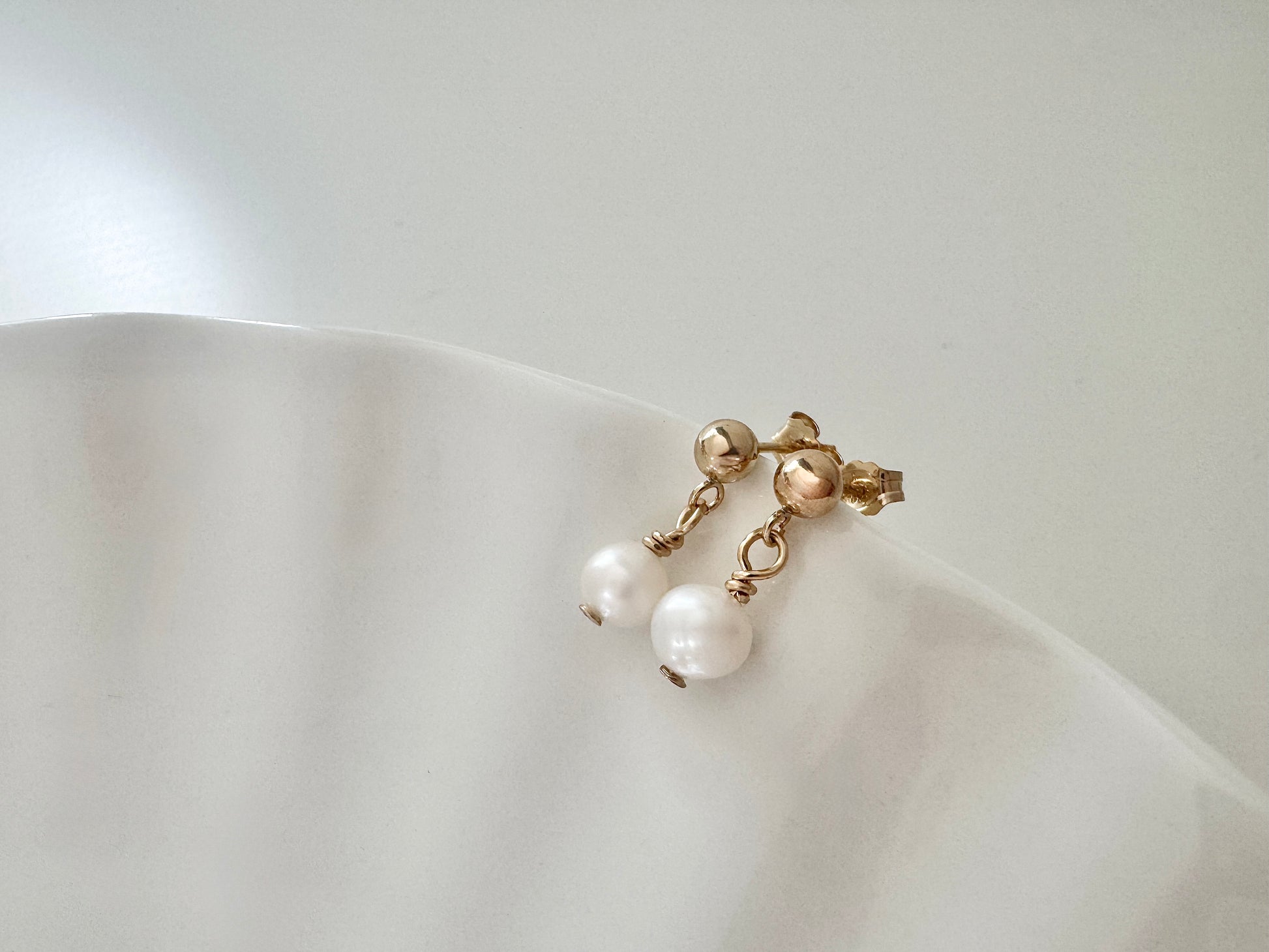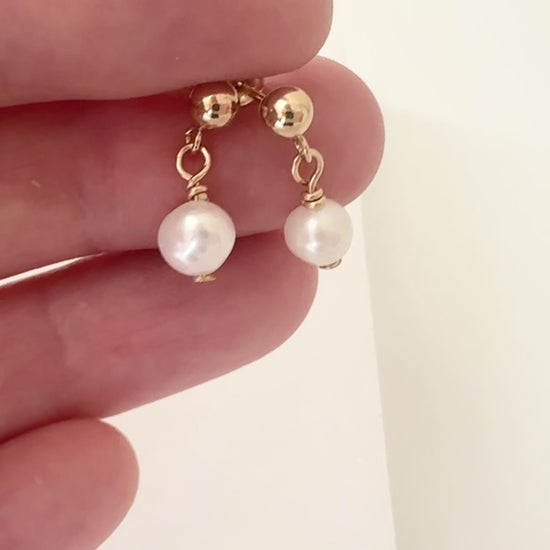 Gold Filled Freshwater Pearl Stud Drop Earrings, Gift for her