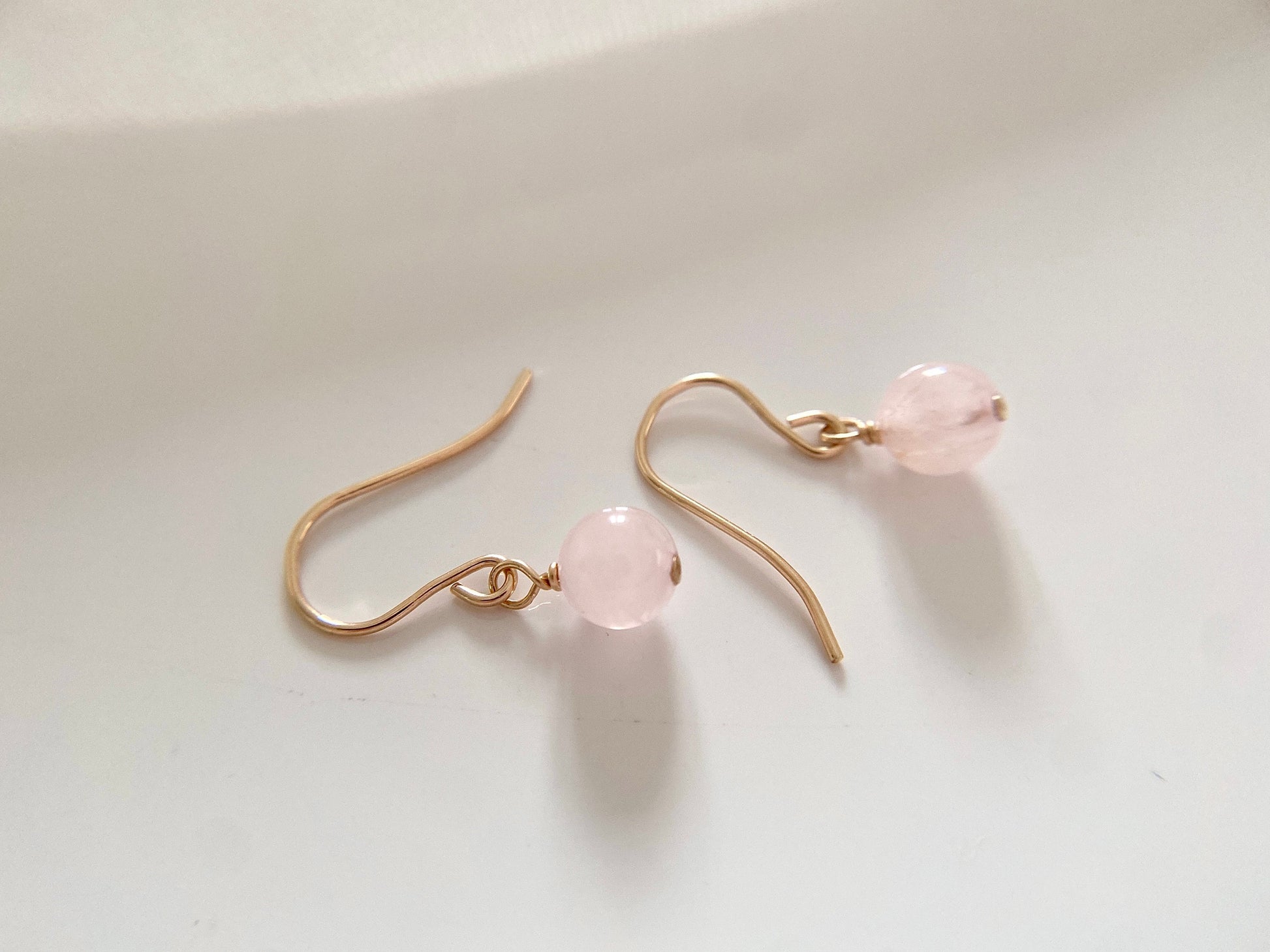 A pair of gold-filled earrings with petite Rose Quartz beads.