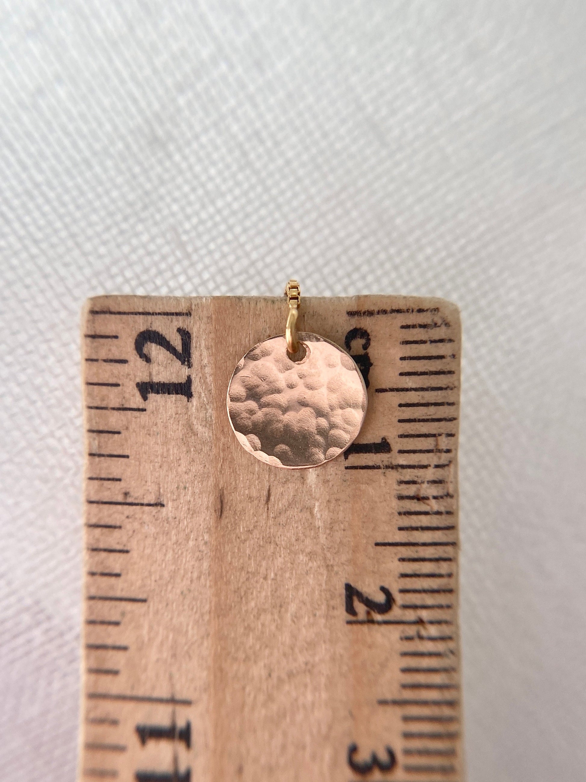 A pair of gold-filled box chain ear threads with petite, light weight gold-filled discs that have a hammered texture.