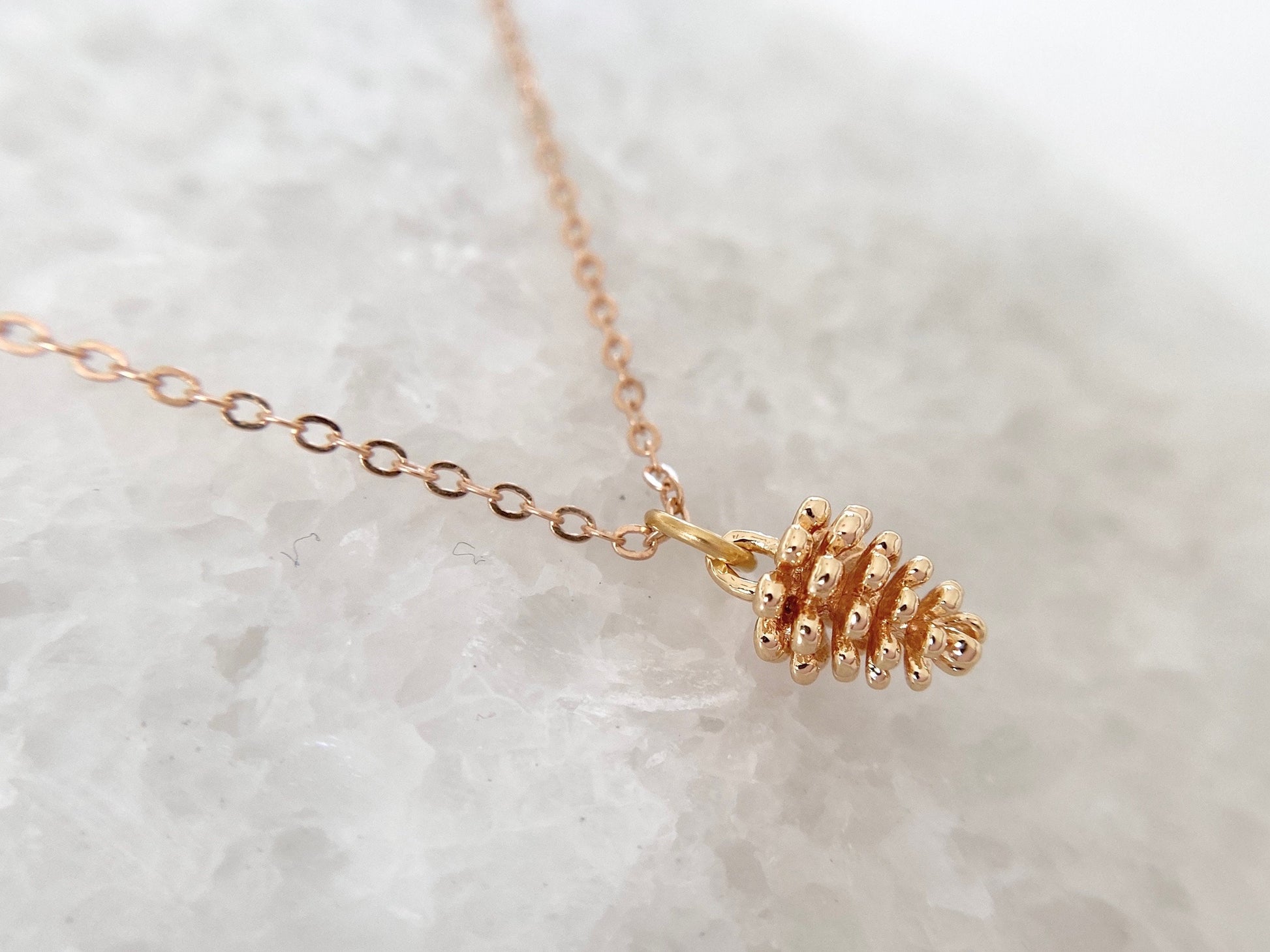 A gold plated pine cone pendant on an 18” gold-plated chain.