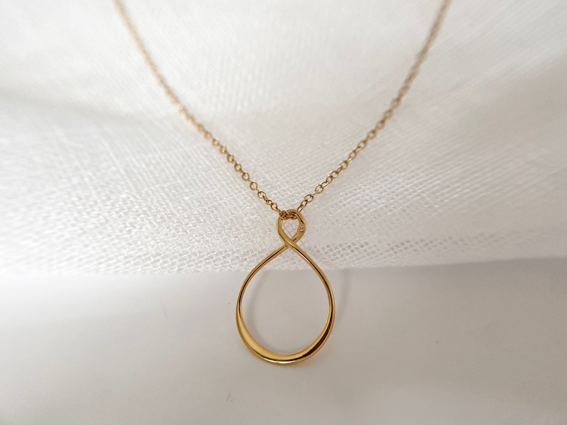 A delicate gold vermeil infinity pendant on an light weight gold vermeil chain.